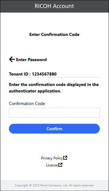 - If MFA (multi-factor authorization) is enabled, enter the confirmation code that is displayed in the authentication application, and then click [Confirm].