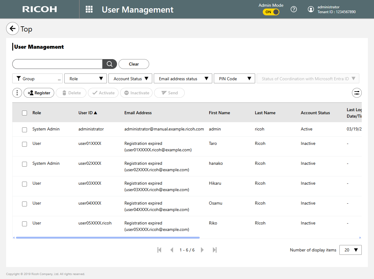 The user's account becomes available once the registered user completes password registration or is authenticated by an external service.
