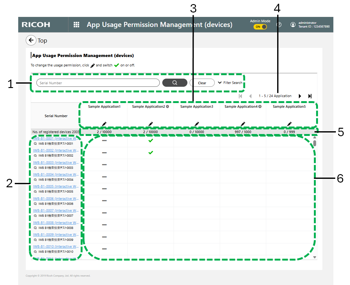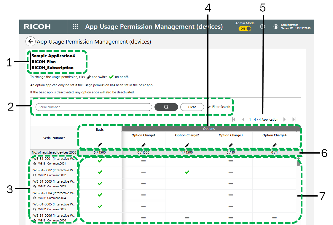 - If you searched only by device type, it is possible to configure application usage permissions even if the number of devices matched exceeds 1,000.