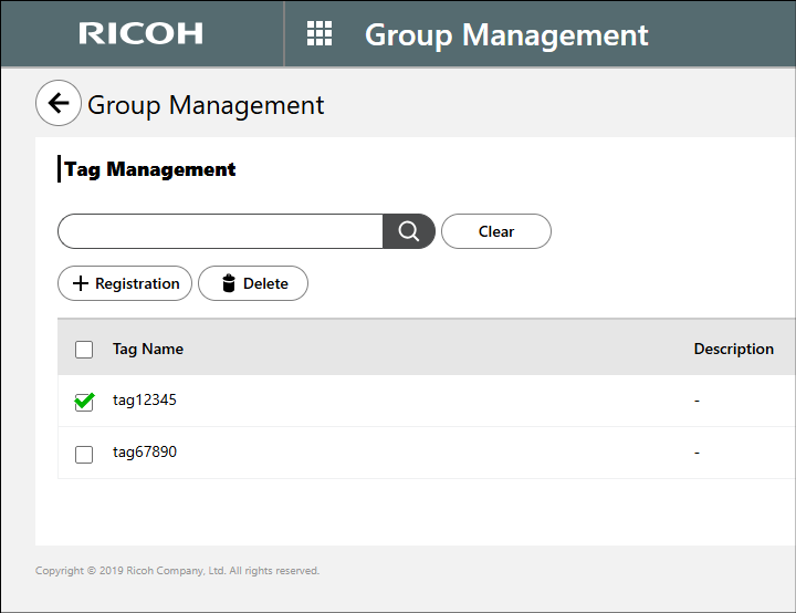 You can use Tag Management to register new tags for groups, and you can edit and delete existing tags. The administrator uses tags to identify groups more efficiently.