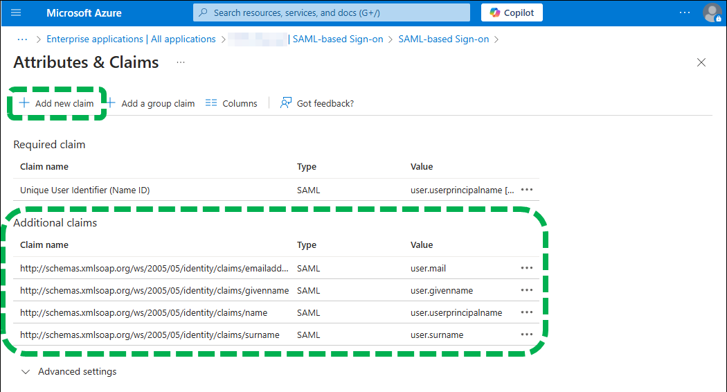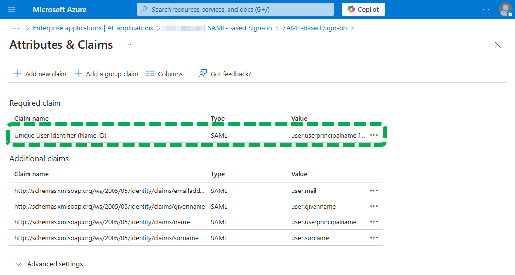 | http://schemas.xmlsoap.org/ws/2005/05/identity/claims/surname | SAML | user.surname |