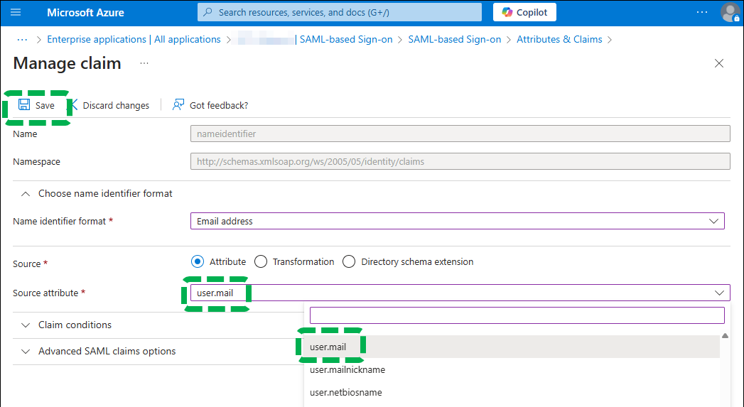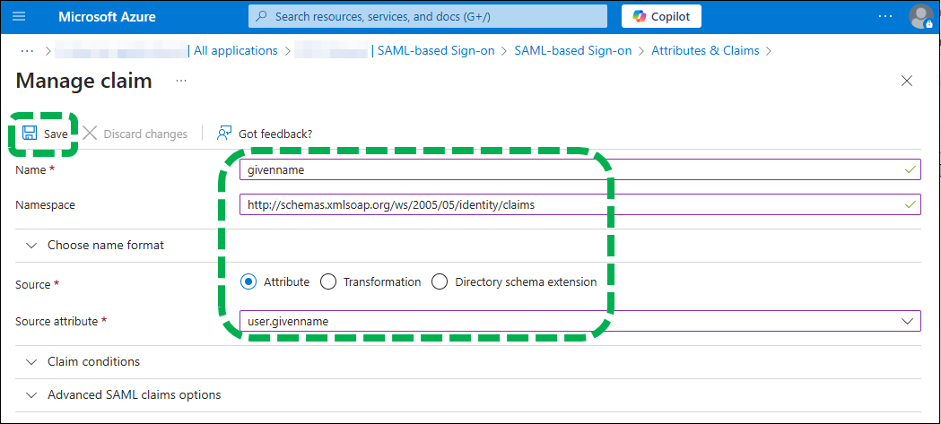 | http://schemas.xmlsoap.org/ws/2005/05/identity/claims/givenname | SAML | user.givenname |