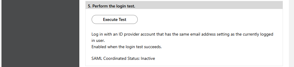 If the login succeeds, "SAML Coordinated Status: Active" is displayed.