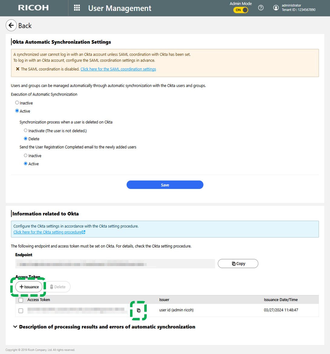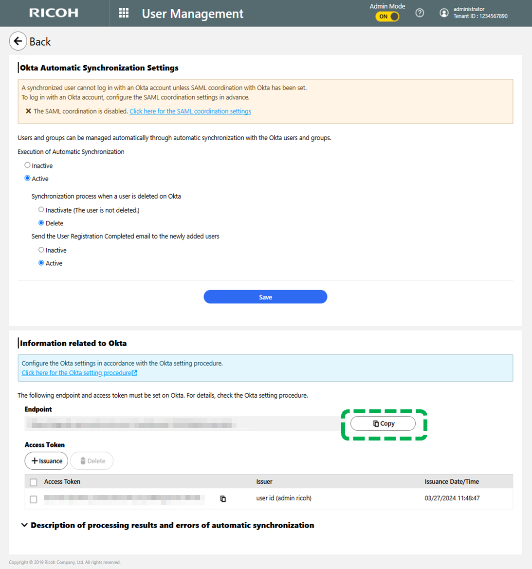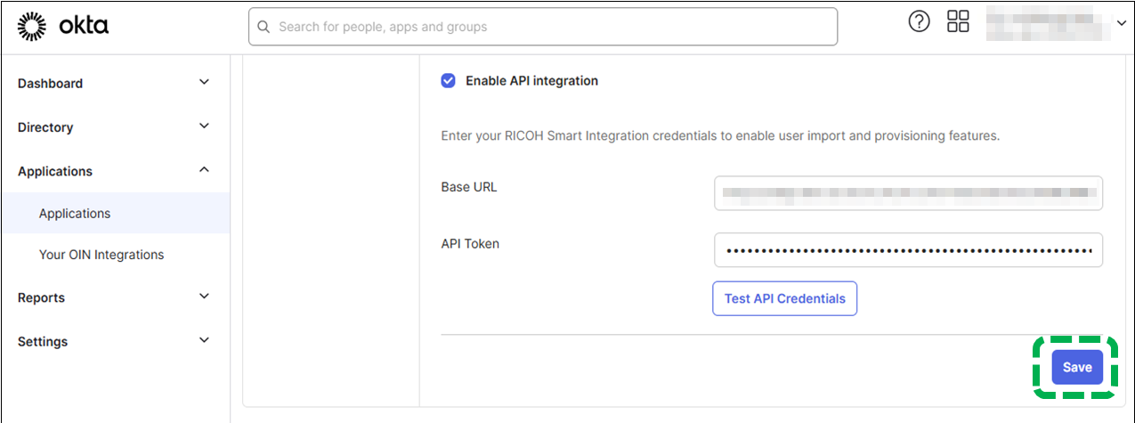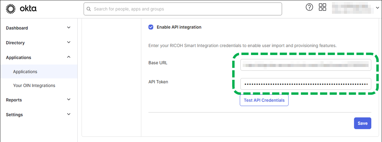 of "Base URL" (Endpoint) and "API Token" (Access Token) that you have copied.